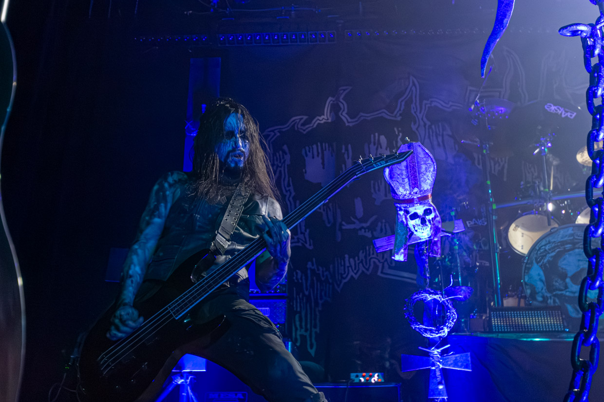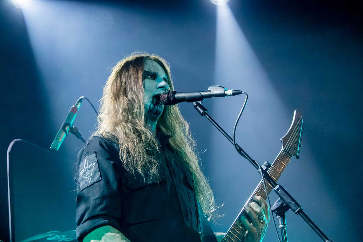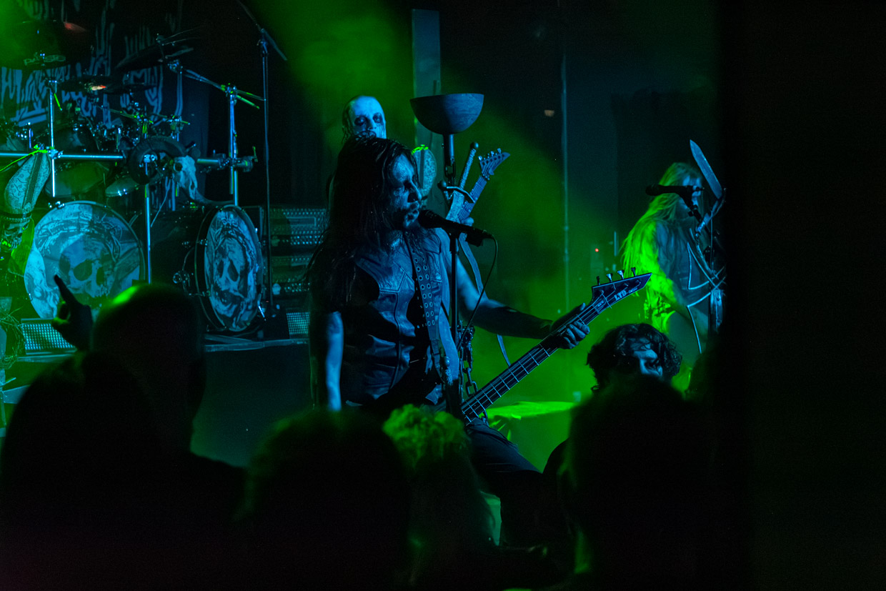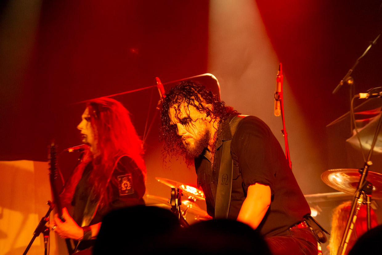 Malgré une certaine « perte de vitesse » dans l’ambiance aux deux tiers de leur marquante prestation, le chanteur et guitariste Helmuth Lehner, membre fondateur, le bassiste Serpenth et leurs acolytes pour cette tournée ont livré une performance magistrale. Rarement a-t-on vu une formation qui sert un rendu aussi puissant et envoûtant en live, qui détonne des versions enregistrées, particulièrement en ce qui a trait à la voix et à la batterie, ultra-présente et saisissante. Le jour et la nuit. C’est qu’on y ajoute tout le côté théâtral propre à la bande, les visages peints, dont celui de Lehner qui rappelle une tête de mort aux yeux noirs et creux, et la présence scénique de ce dernier, incarnation parfaite du personnage black death metal qui donne tout. La mise en scène, les accessoires remplissant les planches enfumées, le son (à cette heure devenu presque parfait) et les éclairages ont aussi fait de ce passage en sol québécois une grande réussite.