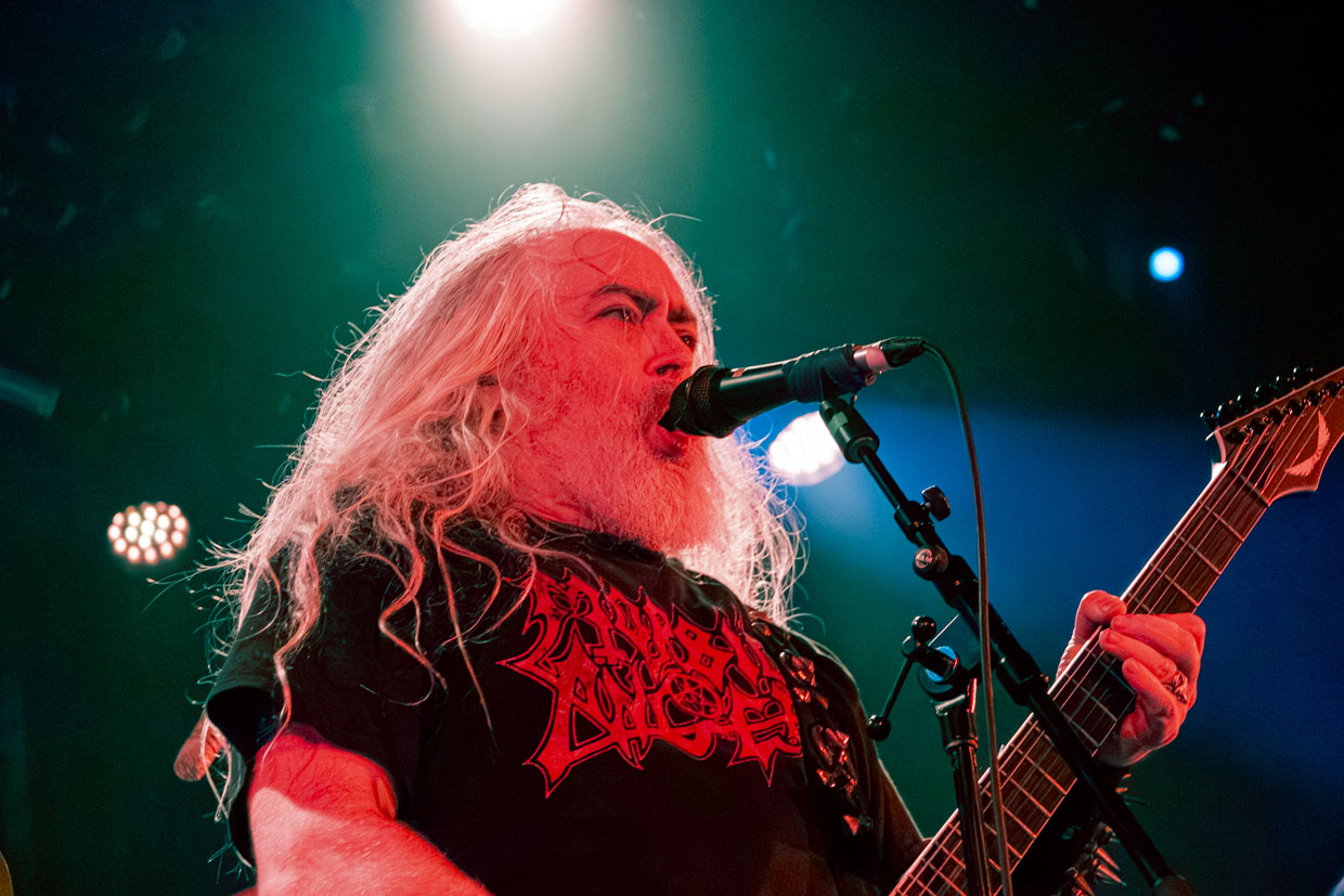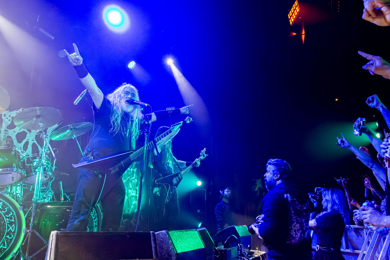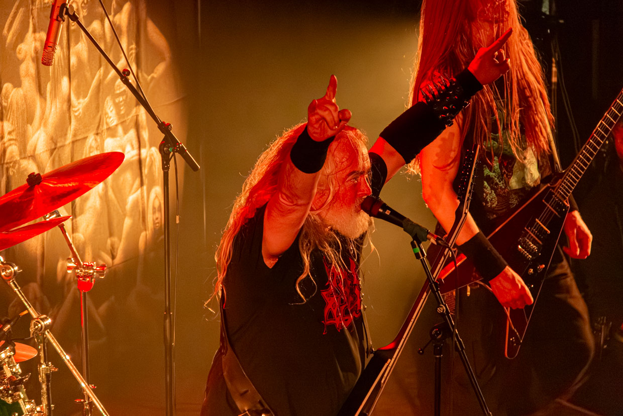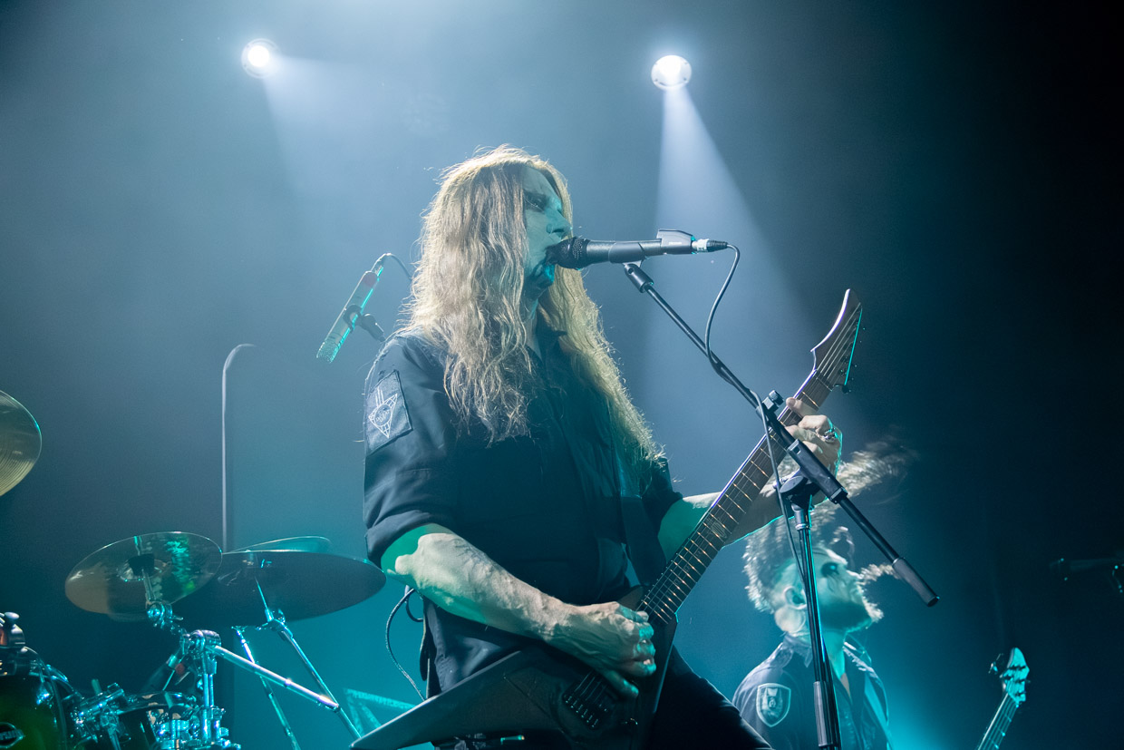 Malgré une certaine « perte de vitesse » dans l’ambiance aux deux tiers de leur marquante prestation, le chanteur et guitariste Helmuth Lehner, membre fondateur, le bassiste Serpenth et leurs acolytes pour cette tournée ont livré une performance magistrale. Rarement a-t-on vu une formation qui sert un rendu aussi puissant et envoûtant en live, qui détonne des versions enregistrées, particulièrement en ce qui a trait à la voix et à la batterie, ultra-présente et saisissante. Le jour et la nuit. C’est qu’on y ajoute tout le côté théâtral propre à la bande, les visages peints, dont celui de Lehner qui rappelle une tête de mort aux yeux noirs et creux, et la présence scénique de ce dernier, incarnation parfaite du personnage black death metal qui donne tout. La mise en scène, les accessoires remplissant les planches enfumées, le son (à cette heure devenu presque parfait) et les éclairages ont aussi fait de ce passage en sol québécois une grande réussite.