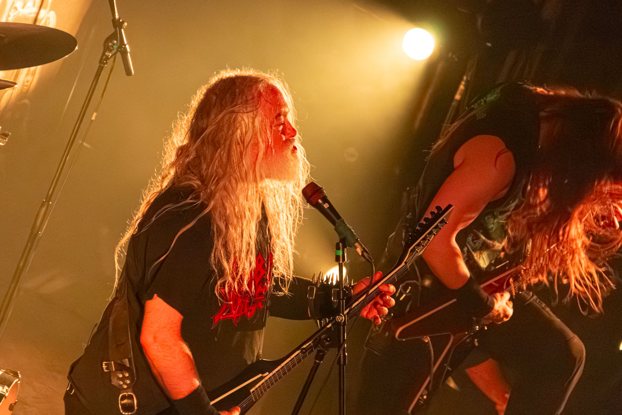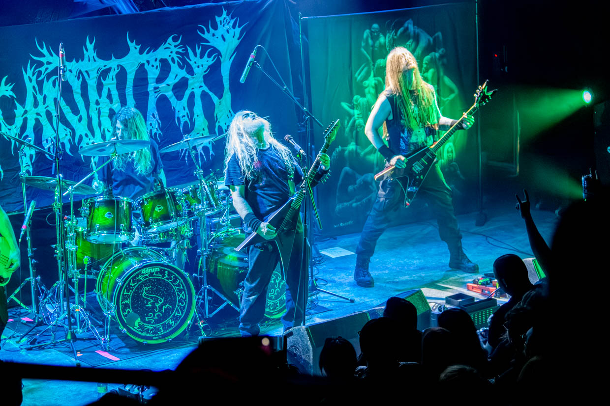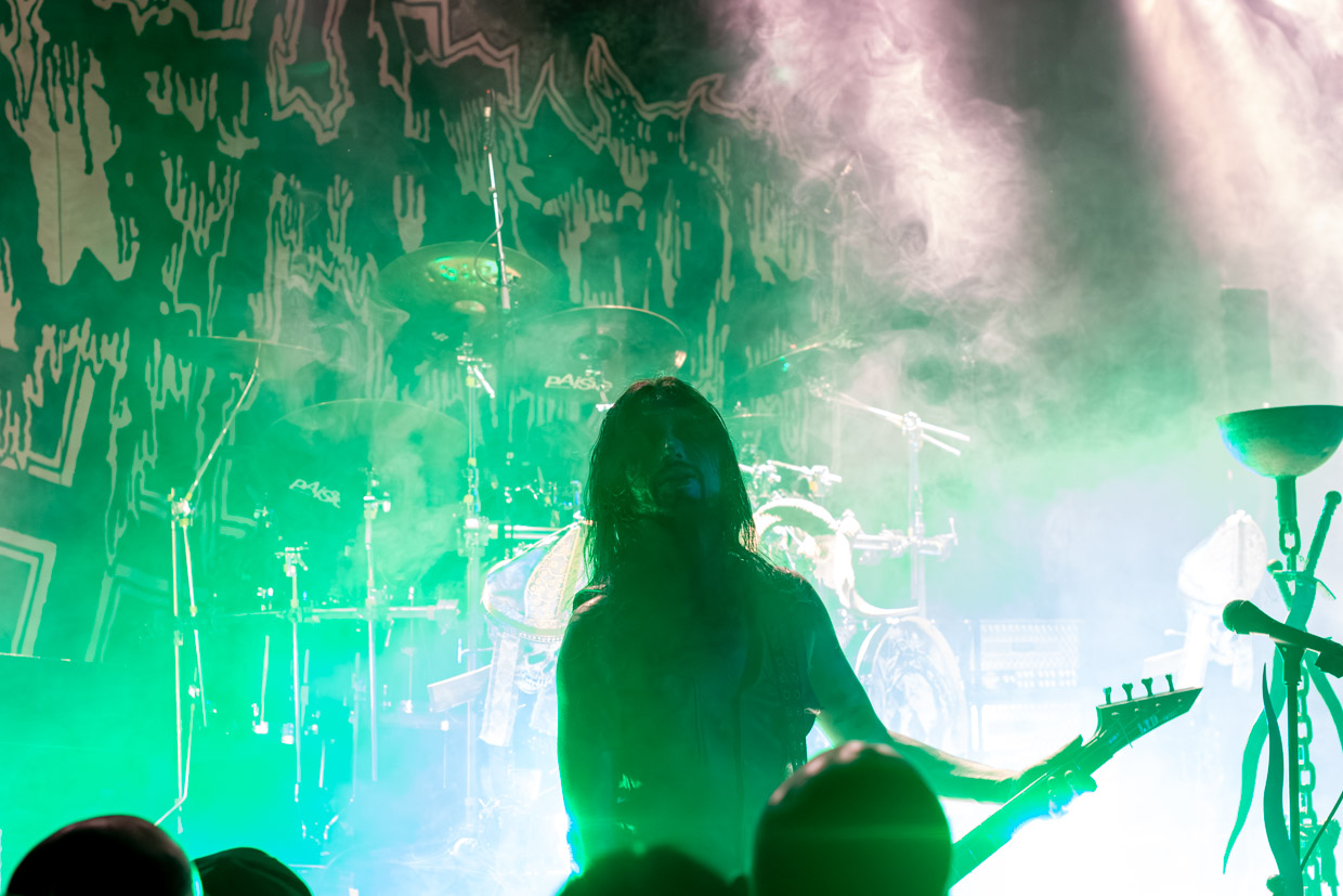 Une autre grande icône du death metal avait précédé : la formation américaine Incantation, fondée en 1989, n’a fait qu’une bouchée des quelque 500 fans présents après un début plus lent et ardu des deux premiers bands, qui n’avait pas fait « lever » la masse à hauteur de certaines attentes. Il faut souligner le fait que la soirée avait débuté particulièrement tôt, à 18h45, et que la salle est demeurée très calme pour un show de métal (même black), et pendant un certain temps.