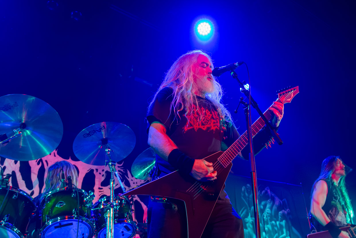 Mené par le chanteur et guitariste John McEntee, également membre fondateur, le band a réussi un tour de maître en alignant les huit chansons de leur album Mortal Throne of Nazarene (1994), un setlist tout spécialement conçu pour le spectacle montréalais. Pour la petite histoire, Incantation a dû, l’an dernier, annuler sa présence à Montréal dans le cadre d’une virée avec le groupe Decapitation en raison du bris de leur autobus de tournée, ce qui en avait déçu plus d’un. En guise de cadeau, ils ont donc repris ce qui devait être joué et qui n’avait pas pu avoir lieu, une marque de reconnaissance que les fans ont souligné à grands coups de cris et d’applaudissements soutenus.