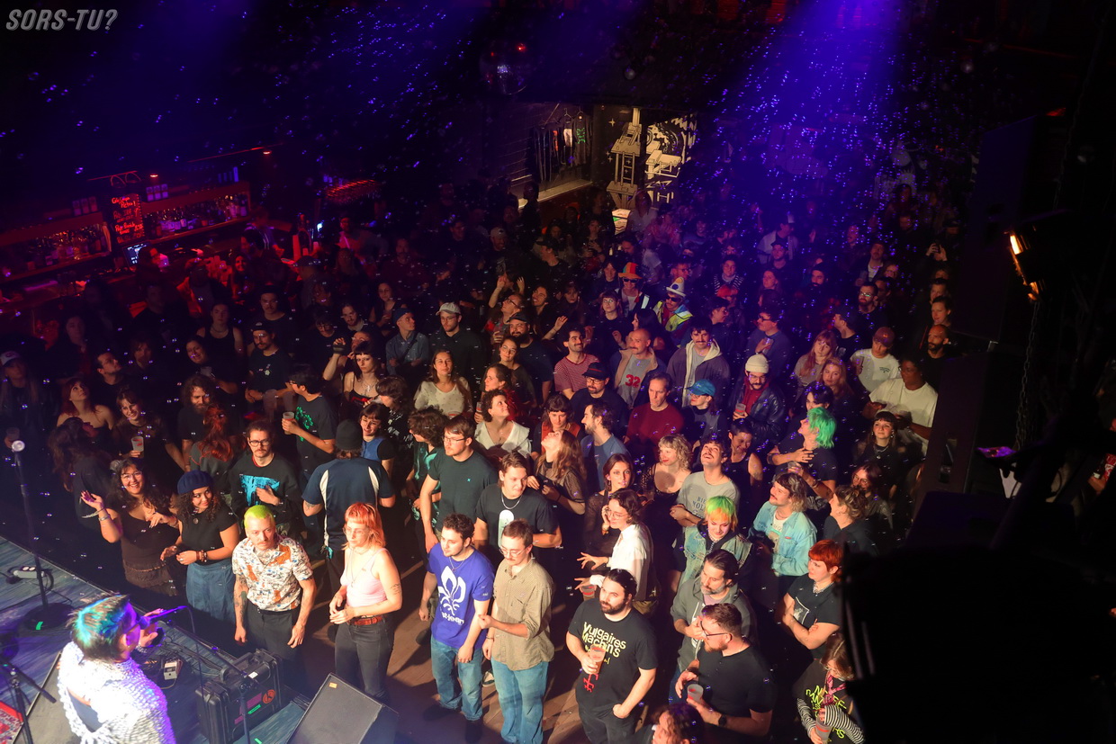 Le public récite les paroles de toutes les chansons, sans exception, et la foule se bouscule allègrement. La preuve de ce dévouement : un jeune clown a amené sa pompe à ballons pour fabriquer des caniches, en plein show, qu’il dépose sur l’avant de la scène. VioleTT Pi lui-même porte un maquillage mi-clown-qui-pleure, mi-goth, en l’honneur de la tournée.