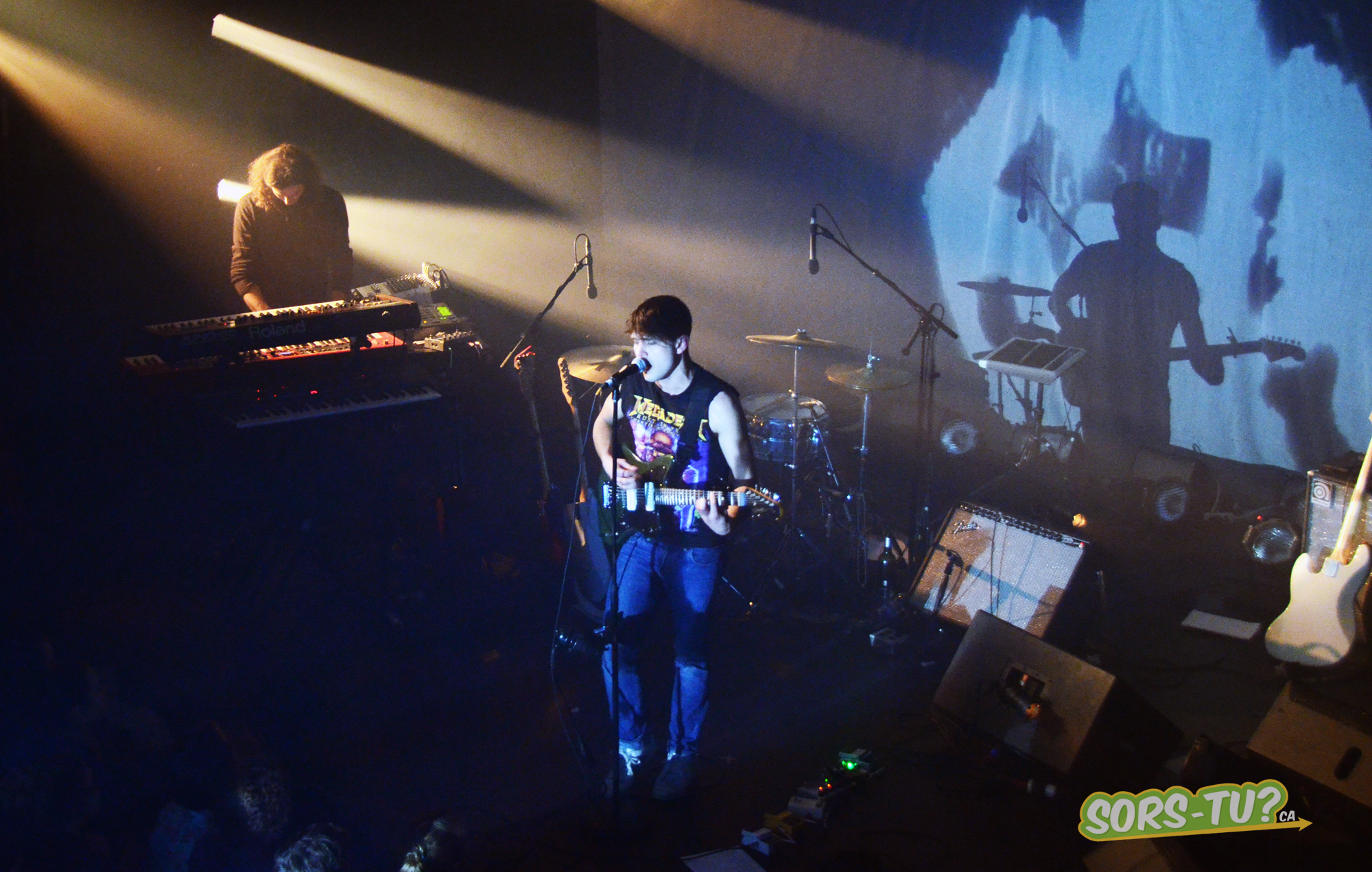 Dans un décor plutôt sobre (toile de fond blanche), le jeune artiste s’est d’abord installé aux claviers pour donner le ton au spectacle. Après avoir rempli la salle d’une musique ambiante, il a pris le contrôle de la soirée et, guitare à la main, à commencé avec la pièce titre de son tout dernier album, Une version améliorée de la tristesse.
