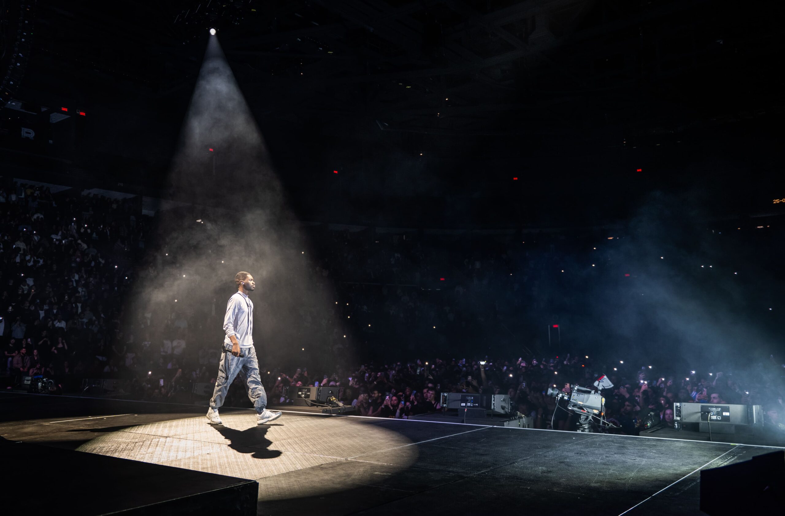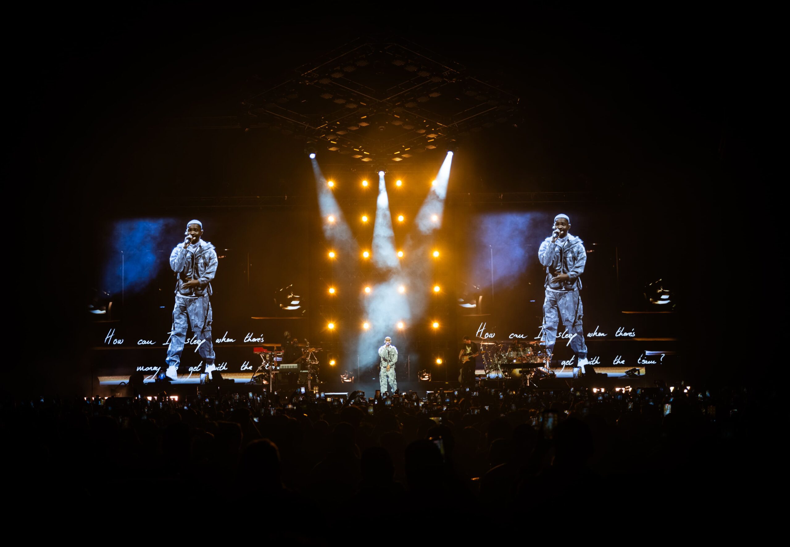 Au piano, il s’intègre pleinement au groupe live, jusqu’à se fondre dans un ensemble porté par batterie, guitare et basse, lors d’un passage entièrement instrumental. Sur Selfish, tiré de son dernier album et en featuring avec James Blake, il surprend même avec un solo de guitare, preuve d’une volonté claire de surpasser le cadre du rap.