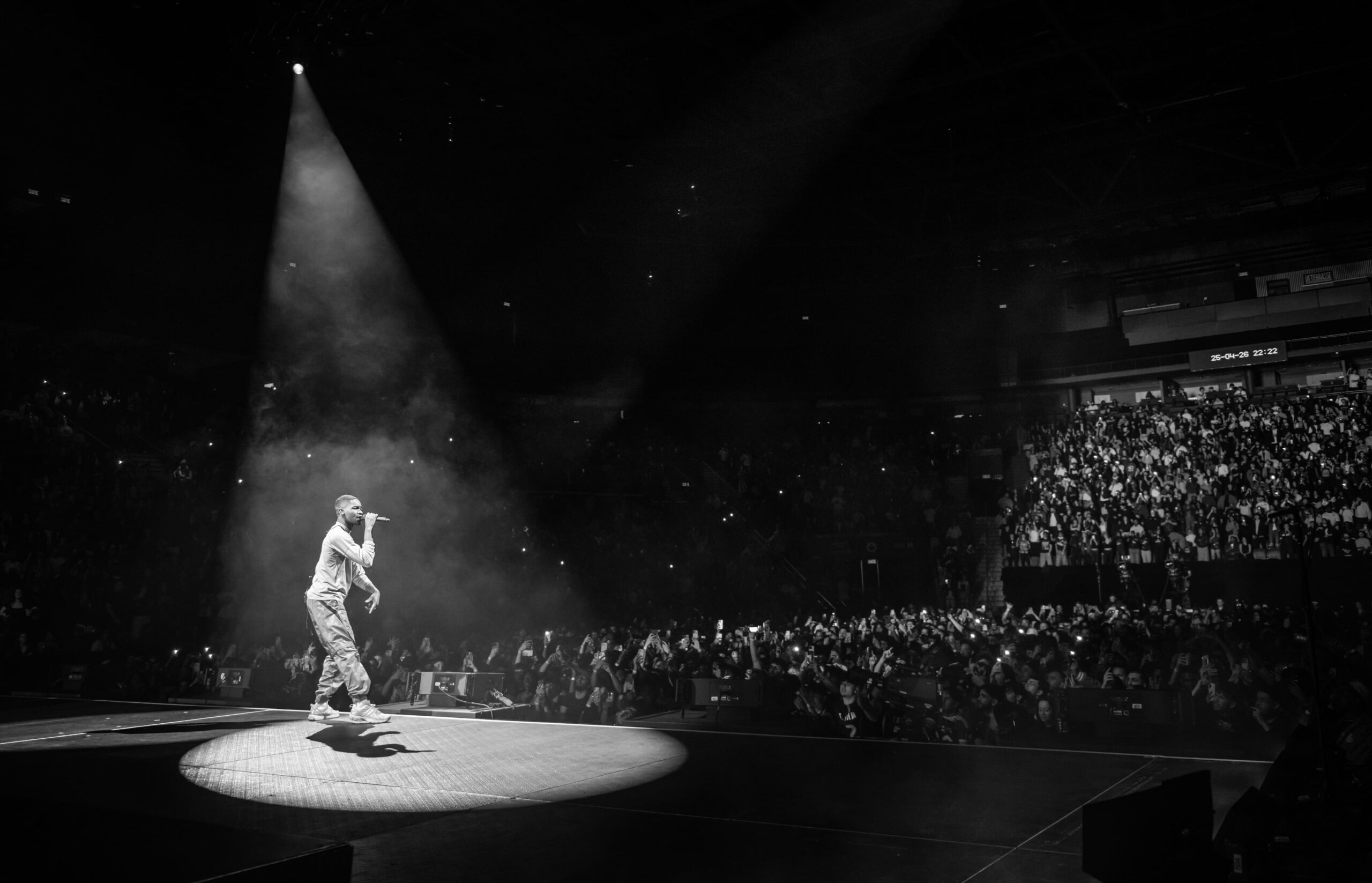 C’est d’ailleurs cette hybridation qui donne au concert sa couleur particulière. Entre rap frontal et moments plus organiques, l’ensemble flirte parfois avec une atmosphère semi-acoustique, maintenant une forme d’intimité malgré la froideur inhérente à la salle.