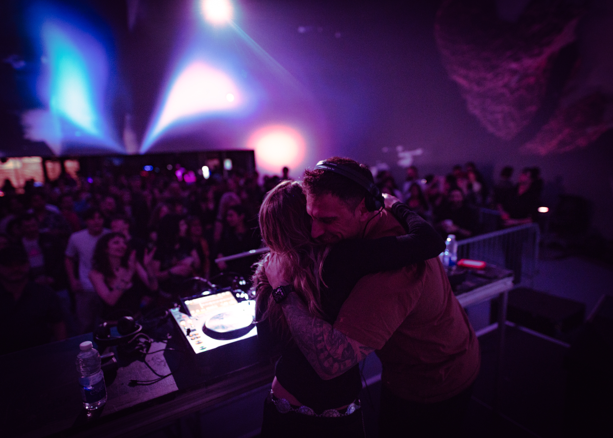 « Habituellement, quand un DJ va faire un set, il va avoir entre 1h30 et 2h. C’est le sweet spot, détaille le directeur de programmation de la SAT. Quand tu es en B2B, tu vas partager ce temps-là avec un autre DJ. En général, ils vont passer un ou deux disques chacun à la suite, et ils vont donc se challenger. Ça amène l’artiste à pousser un peu ses limites, parce que le disque qu’il y avait juste avant, c’est pas celui qu’il a choisi. Le DJ sera obligé de réfléchir à la musique qu’il va pouvoir passer après pour enchaîner correctement, puis continuer le dance floor dans une même vibe. »