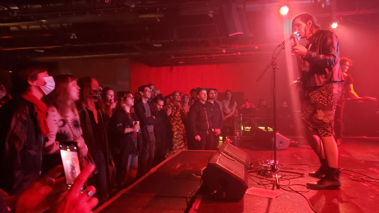 Le groupe, qui n’avait pas joué ensemble depuis un bon moment, lançait une tournée qui les amènera dans neuf villes du Canada et des États-Unis. Furmam, émue par l’accueil qui lui réservait le public montréalais, a confié presque en chuchotant qu’au sud de la frontière, certains politiques discutent d’associer les personnes transgenres au terrorisme. Difficile d’imaginer ce que cela fait d’être considérée ennemi de son propre pays. Mais si quelqu’un peut nous le faire comprendre sur scène, c’est bien elle : elle est apparue vulnérable au point de s’effacer sur le bord de la scène ou de s’y allonger, puis explosive et révoltée en jouant de puissants riff punk à la guitare.