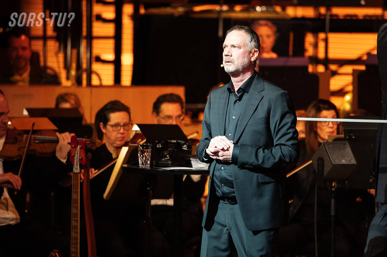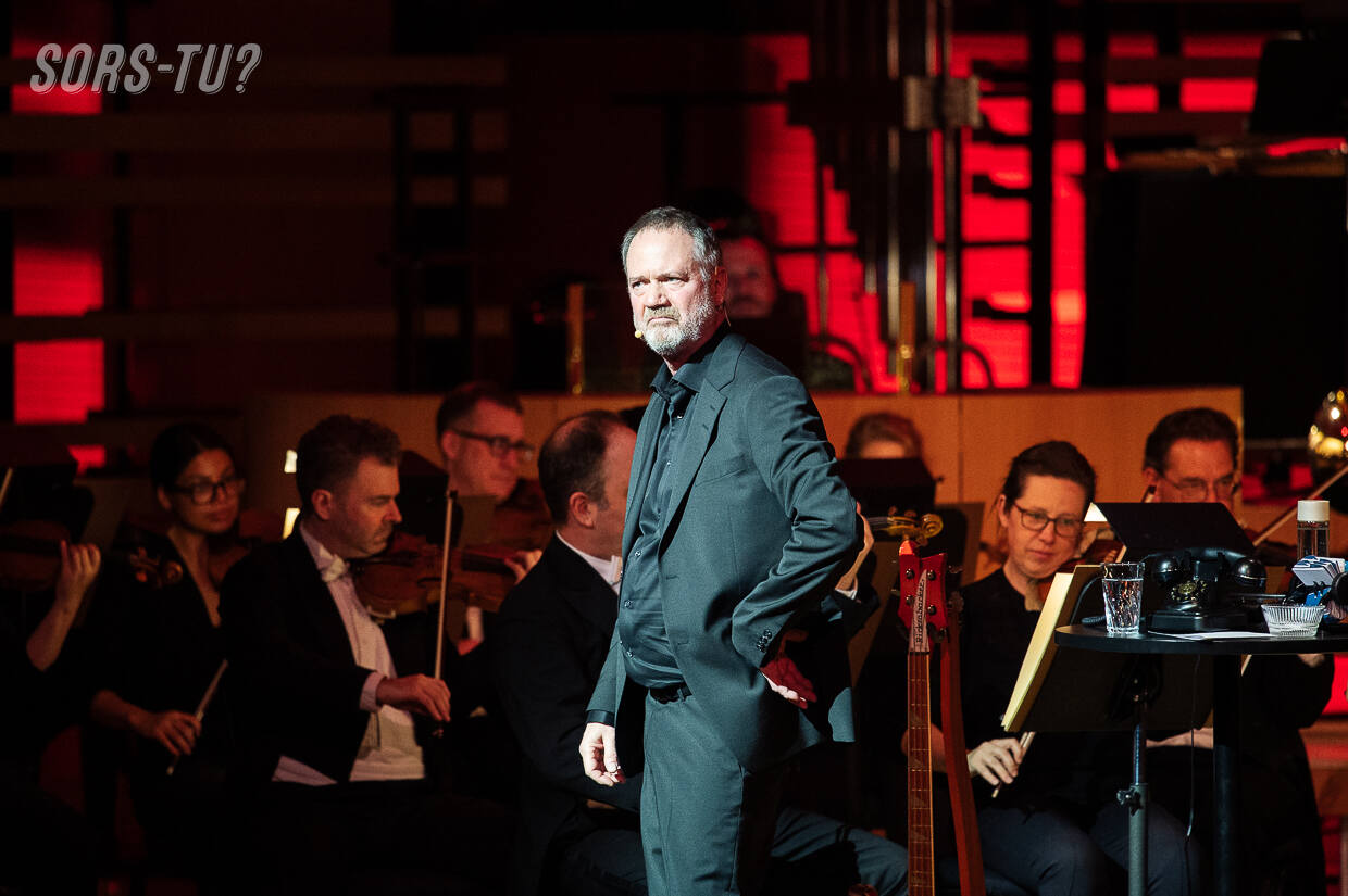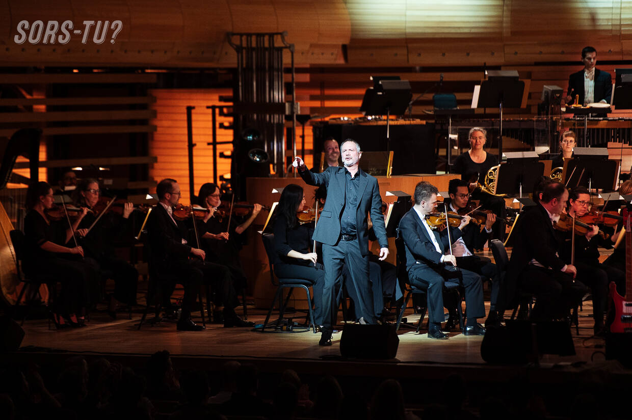 On peut alors comprendre sa nervosité évidente à l’idée de se produire pour une toute première fois à vie sur scène afin de défendre des petites oeuvres cultes qu’il n’a jamais répétées. Il pouvait sans doute se rassurer en se sachant bien entouré. Pas moins de 75 musiciens de l’OSM l’appuyaient musicalement, dirigés sous la baguette du chef Simon Rivard. Mara Tremblay et Marie-Pierre Arthur faisaient office de choristes de luxe, excellentes et naturelles évidemment, pour l’aider à atteindre les notes aïgues qu’il a parfois osé enregistrer sans jamais penser qu’il devrait un jour les refaire sur scène… à 65 ans!