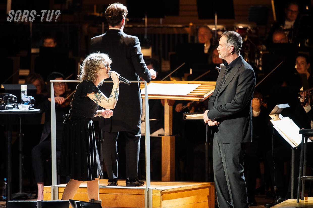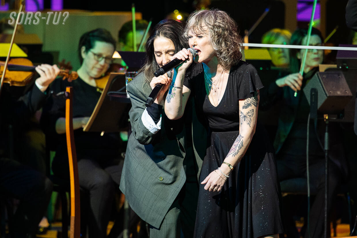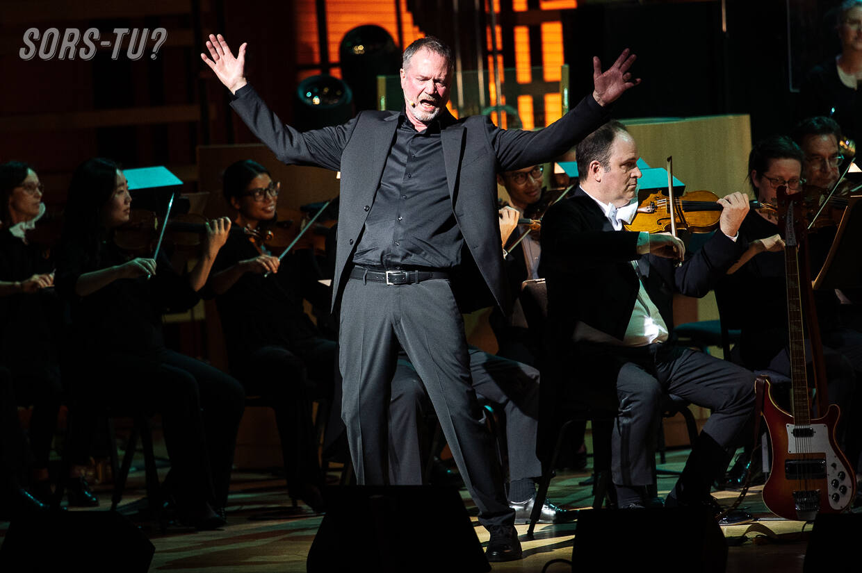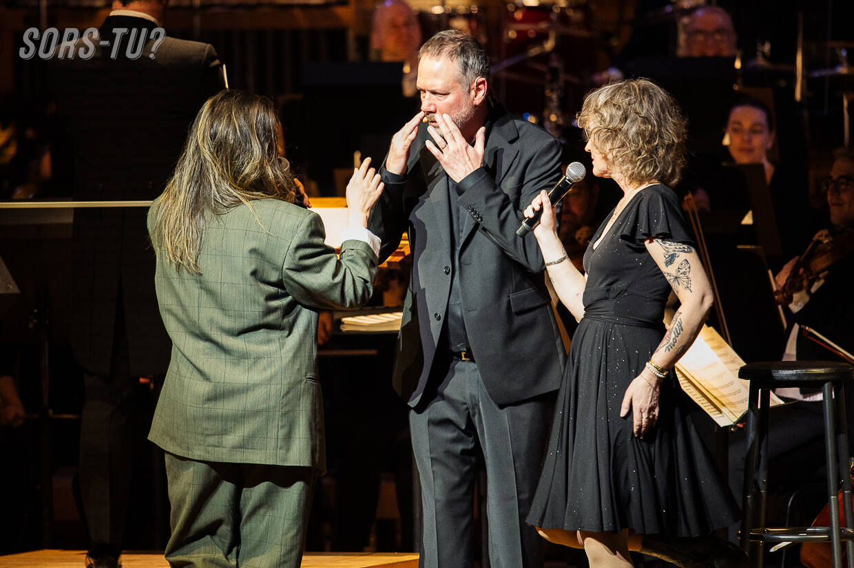 On peut alors comprendre sa nervosité évidente à l’idée de se produire pour une toute première fois à vie sur scène afin de défendre des petites oeuvres cultes qu’il n’a jamais répétées. Il pouvait sans doute se rassurer en se sachant bien entouré. Pas moins de 75 musiciens de l’OSM l’appuyaient musicalement, dirigés sous la baguette du chef Simon Rivard. Mara Tremblay et Marie-Pierre Arthur faisaient office de choristes de luxe, excellentes et naturelles évidemment, pour l’aider à atteindre les notes aïgues qu’il a parfois osé enregistrer sans jamais penser qu’il devrait un jour les refaire sur scène… à 65 ans!