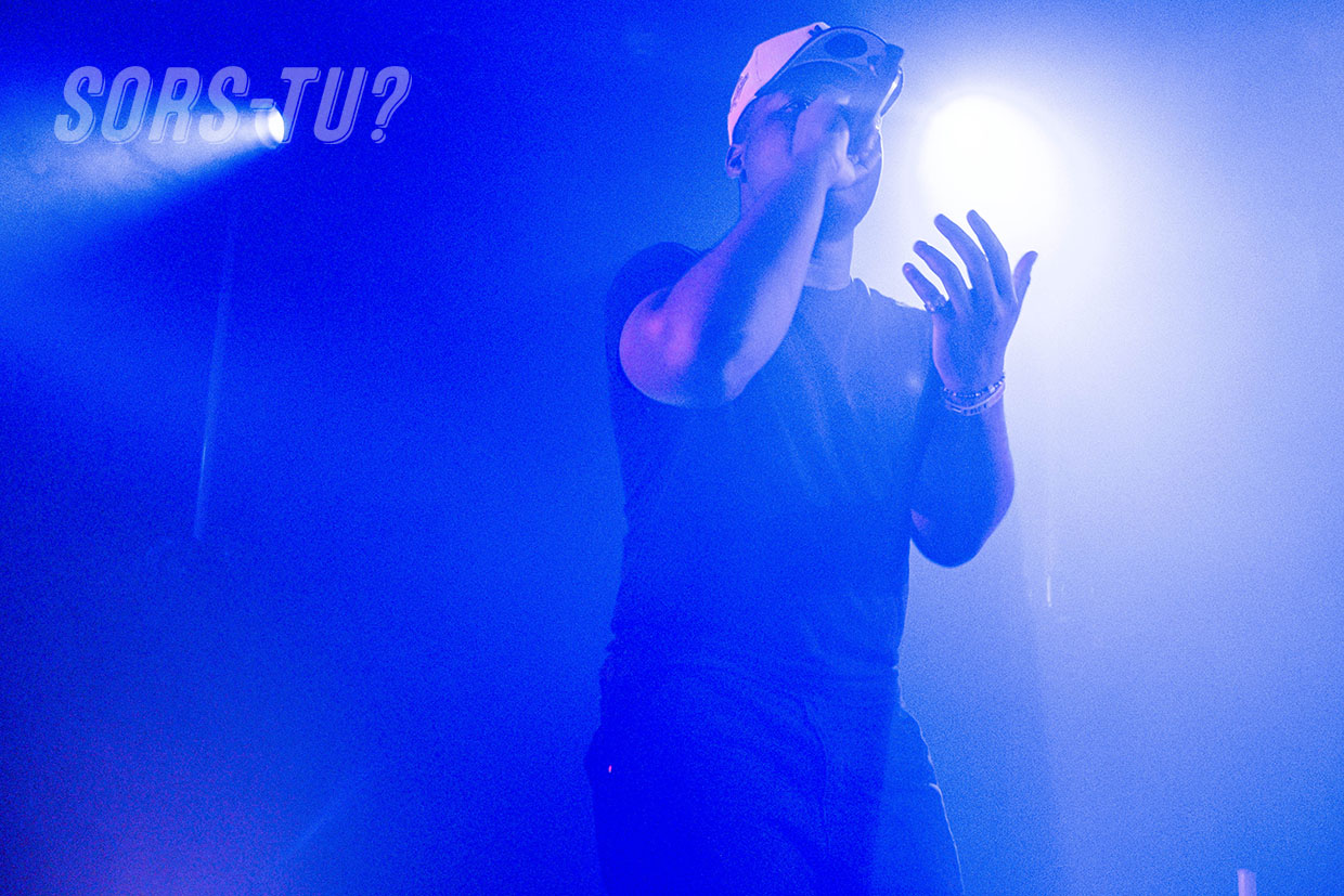 Le Lavallois traverse le public et entre sur scène sur les premières notes de l’iconique Foule d’Édith Piaf, sample utilisé pour son morceau Contentieux (j’avais beaucoup aimé la promo sur Instagram). Très rapidement, on comprend qu’on a affaire à un flow aiguisé et technique. De Lafe n’en est pas à sa première scène, il était quelques semaines plus tôt en première partie de La Mano 1.9 au Théâtre Capitole. Baigné d’influences européennes, il a aussi eu l’occasion de fouler la scène avec Bigflo & Oli, Jwles ou encore 8Ruki.