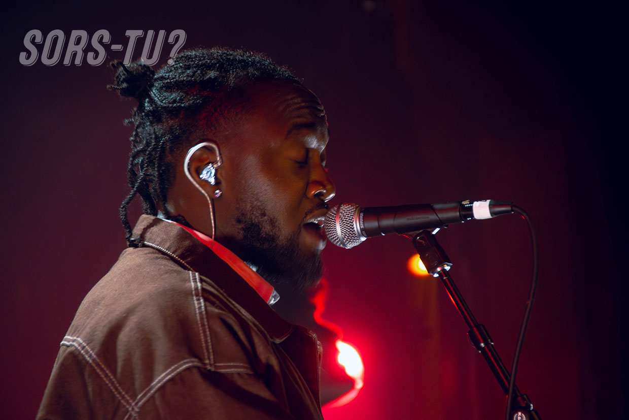 Le climax de la performance est sans doute l’interprétation de Mensonges, un morceau sensible et touchant écrit en 2020 pendant la pandémie alors qu’il avait encore le pseudonyme Denzel. Avec le trio de choristes autour de lui, la disposition donnait forme à un tableau intime. Pour couronner le tout, le guitariste Antoine Tousignant nous a offert un solo mémorable à la fin du morceau.