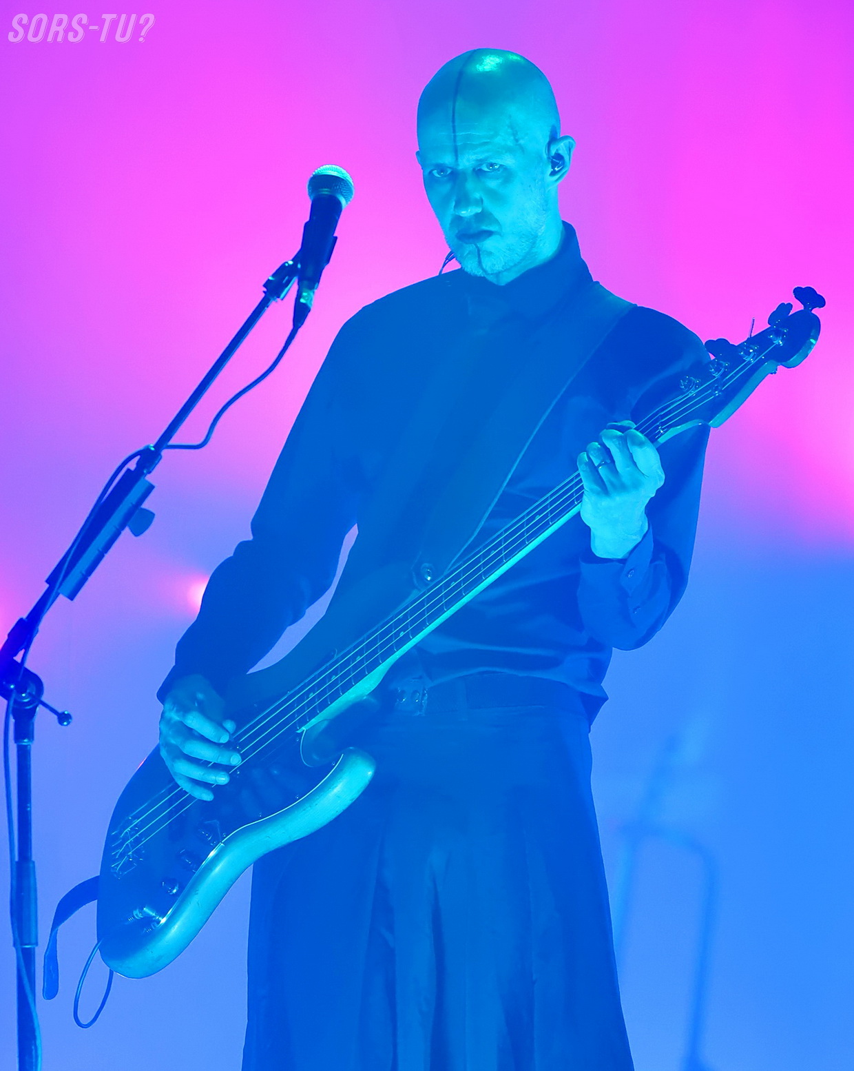 Comme pour nous donner raison, dès l’ouverture avec Halo, le britannique ayant connu le succès dès les années 1970 est venu arpenté la scène du MTelus avec énergie dans ses habits gothiques, comme possédé par sa musique. Il a prouvé en quelques minutes qu’il serait à la hauteur de sa légende tout au long des 100 minutes du concert.