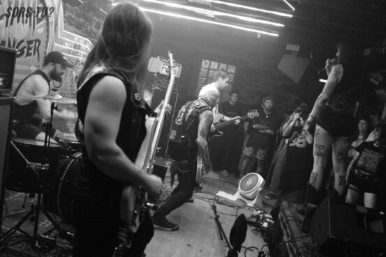 Surtout que le tout n’est pas toujours dans le tapis. Car en plus d’être un album surpuissant truffé de riffs des plus violents, Une ville, une mine, un cancer respire et surprend. Il comporte des moments plus posés, parlés, voire introspectifs, offrant une séquence rythmique électronique ici, une touche de guitare acoustique là. Et, comme Glencorruption (2023) et Capitale de l’arsenic (2024; gagnant du GAMIQ du meilleur album métal), des paroles chargées de brutes et acides émotions.