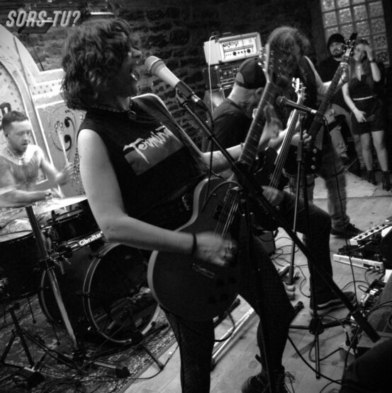 Il faut dire qu’on avait droit à un programme triple de la mort qui tue, mettant aussi en vedette deux autres formations des plus tonitruantes, menées par des filles qui en ont dedans. D’abord, c’est Mulch qui ouvrait les hostilités, autour de 21h. Derrière ses verres fumés, Rose Cormier se contorsionnait furieusement en gueulant comme une damnée dans son micro, tout en gossant avec ses pédales à effets spéciaux, pour mettre plus ou moins d’écho.