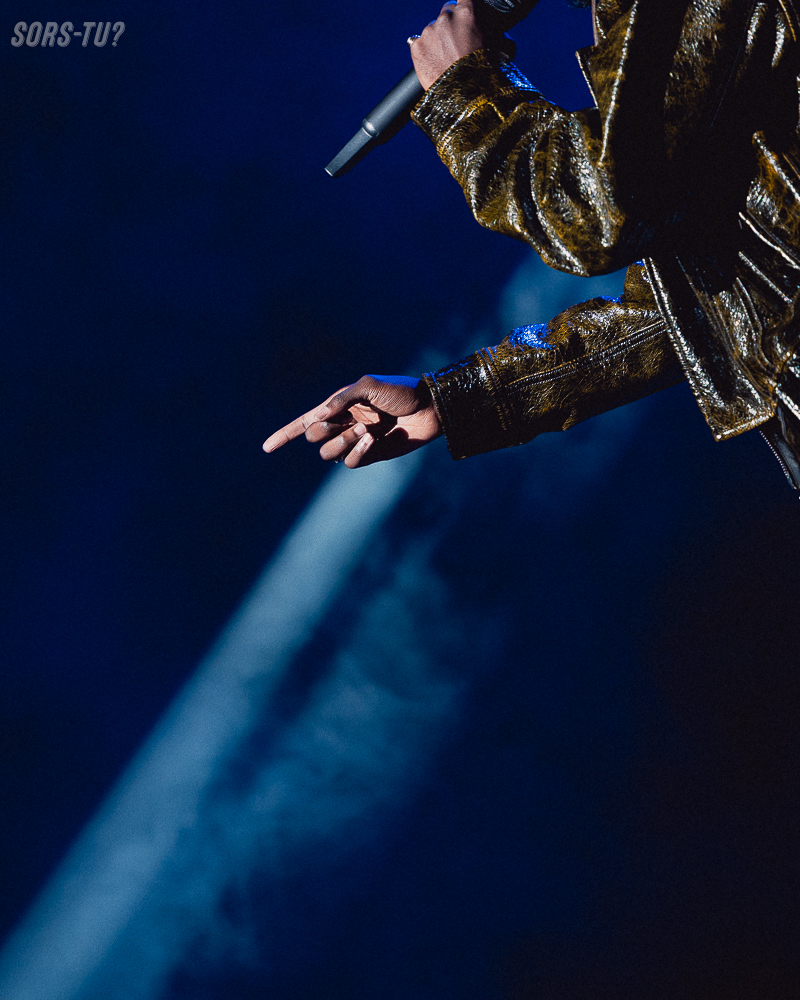 Si je dois accorder un point positif à l’artiste, c’est qu’il a été plutôt généreux envers son public, interprétant plus d’une trentaine de morceaux (pas tous dans leur entièreté non plus) en 1h30 de spectacle. « Montréal, on partage une belle histoire depuis 2017, lance Josman. On partage le temps, les albums. » En effet, tous ses projets y passent : J.0.$ (2017), M.A.N. (Black Roses & Lost Feelings) (2022), SPLIT (2020), sans oublier l’excellent J.000.$ (2023), duquel Problèmes de riche, CARLO et Ailleurs seront emmenés sur scène ce soir. Ce dernier projet cité, J.000.$, malgré un accueil discret à l’époque, est d’ailleurs l’un des meilleurs longs jeux sortis dans le hip-hop franco-belge ces dernières années, d’un humble avis personnel. Cohiba est l’un des textes les plus vrais et les plus intelligents qu’il m’ait été donné d’entendre depuis le début de la décennie : Josman, sous des airs un peu bling-bling, est un éternel homme triste, découragé. Vaillant, un poil optimiste. Mais triste tout de même. La vulnérabilité dans un univers aussi profondément macho que celui du rap, ça se souligne.