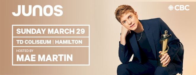 Animé par Mae Martin, le gala des prix JUNO est prévu pour le dimanche 29 mars 2026, à Hamilton.