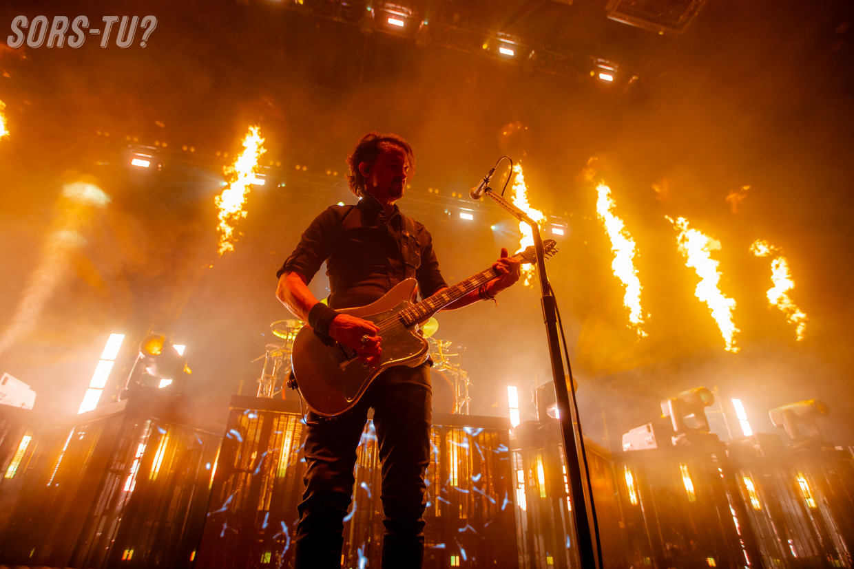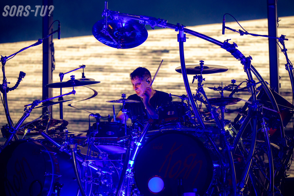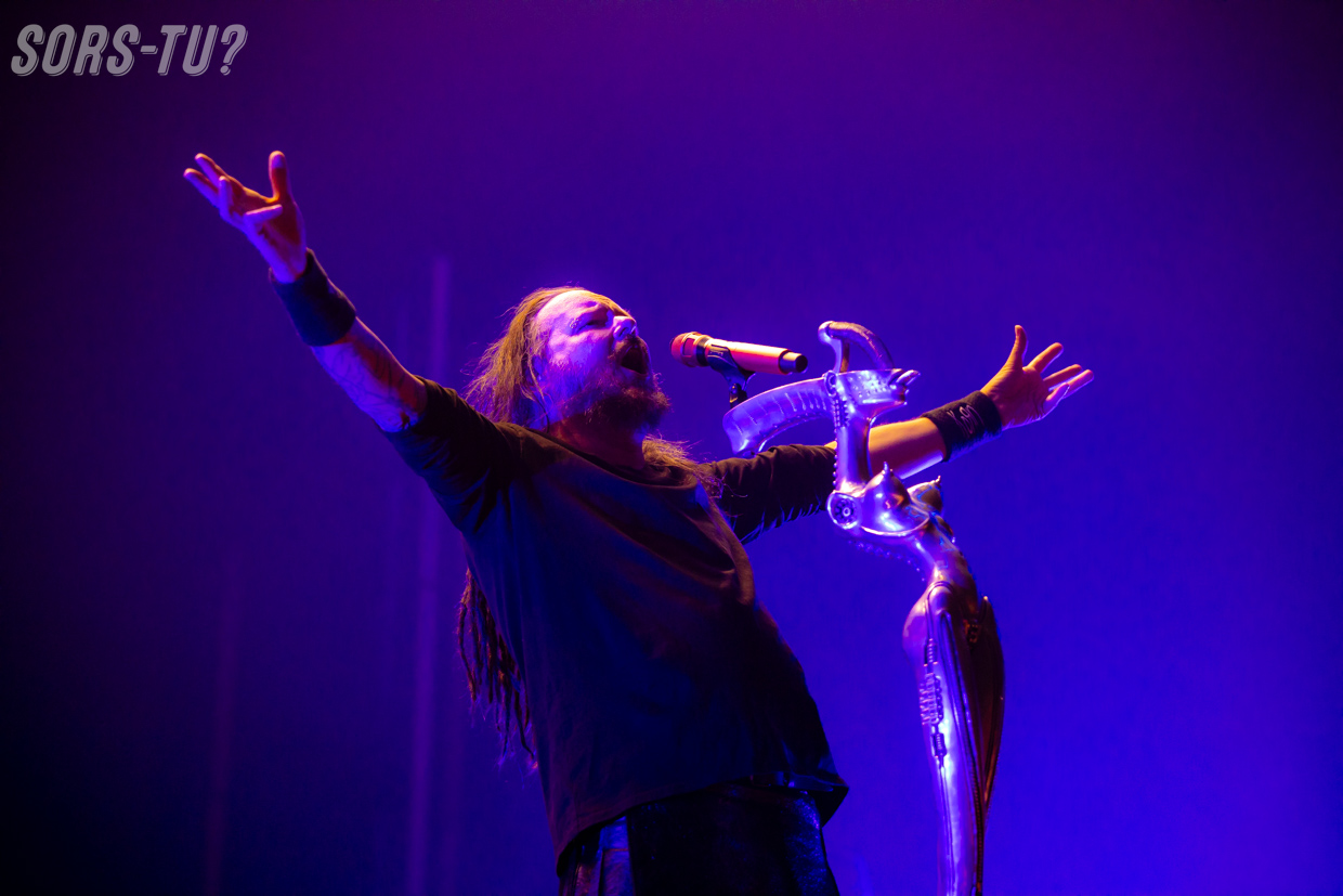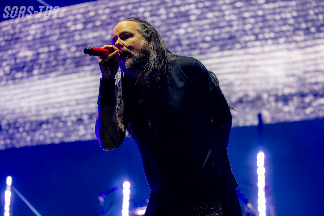 Bref, 1 h 30 de set avec une setlist aux petits oignons : de Blind à Freak on a Leash, Got the Life, Falling Away From Me… Cependant, je me serais bien passé des mini covers de One de Metallica et de We Will Rock You de Queen : limite ringardes et sans aucun rapport avec Korn. Autre bémol : la scénographie, pauvre voire inexistante. Pour un groupe avec de tels moyens, j’aurais aimé une mise en scène plus travaillée. Même chose pour la voix de Jonathan Davis sur les passages calmes : difficile par moments de distinguer les paroles. Ce ne sont que des détails techniques, mais ils comptent.