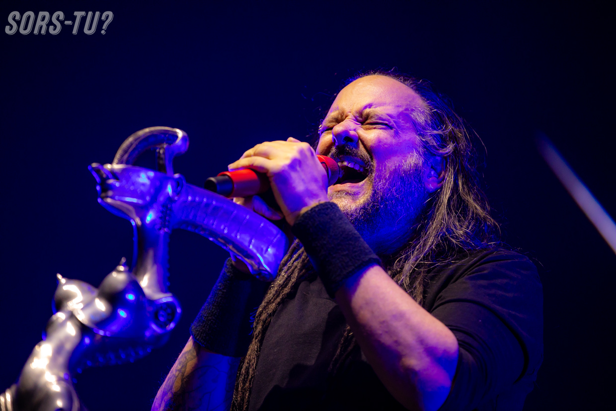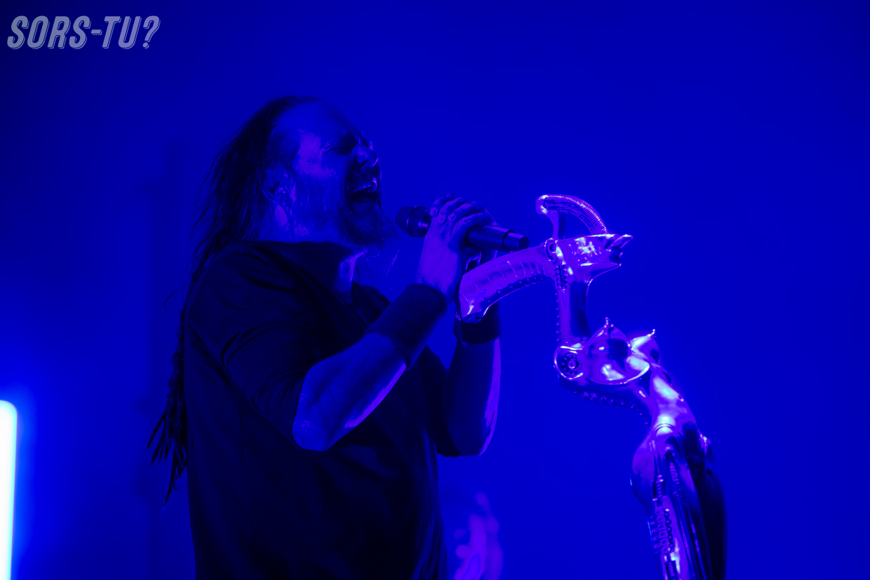 21 h 25 : Korn entre sur scène avec Blind. Comment ne pas avoir la chair de poule ? Ça faisait 5 ans que la formation californienne n’avait pas mis les pieds au Québec. Il était temps ! Des fois, je me dis qu’il y a quelque chose qui cloche dans le booking des tournées. Surtout que Korn n’était pas venu promouvoir Requiem, sorti en 2022. Il aura fallu une tournée 100 % canadienne pour qu’on pense enfin à nous. Montréal est une grosse ville nord-américaine, certes, mais on a parfois l’impression qu’on nous oublie au profit de Toronto, ou Buffalo, voire pire, Albany…