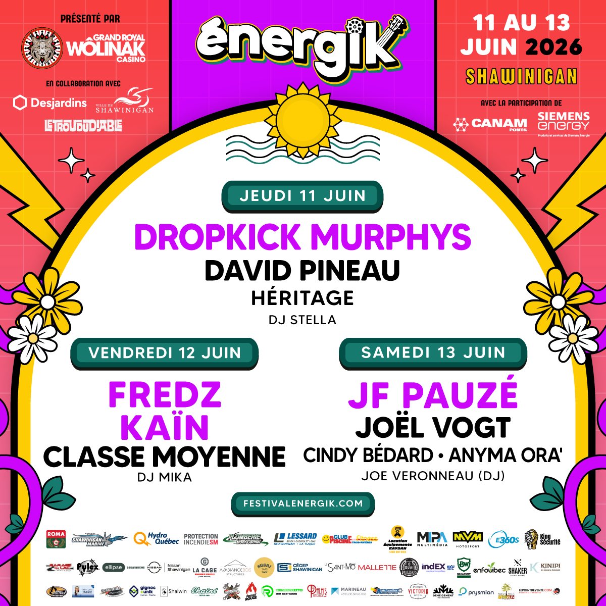 Après avoir annoncé Dropkick Murphys et JF Pauzé dans les dernières semaines, le festival Énergik de Shawinigan lève le voile sur sa programmation complète et garni son affiche d’une dizaine d’autres noms.