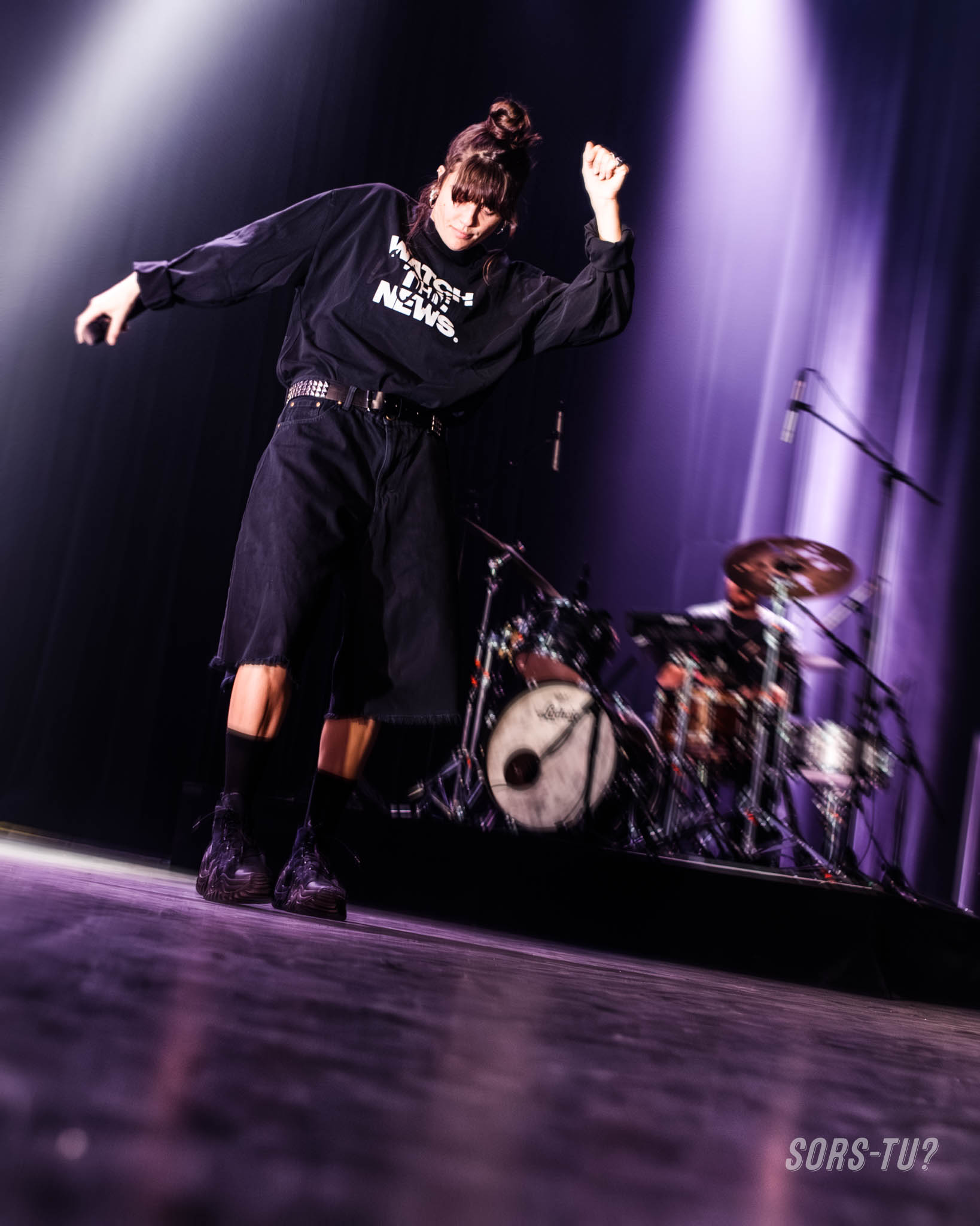 Il est vrai que la finesse des arrangements studio — les textures, les couches sonores, la précision des paroles — s’efface partiellement dans le tumulte du live. Certaines subtilités se perdent, mais ce qui surgit en échange est l’urgence, la chair, la présence. Là où l’album est calibré, la scène est vivante, mouvante. Là où tout est ciselé, ici tout se respire. Erez ne reproduit pas : elle réinvente, transforme, amplifie.