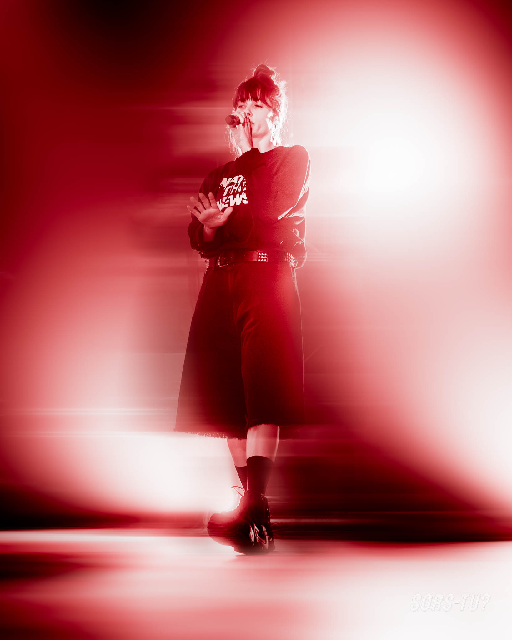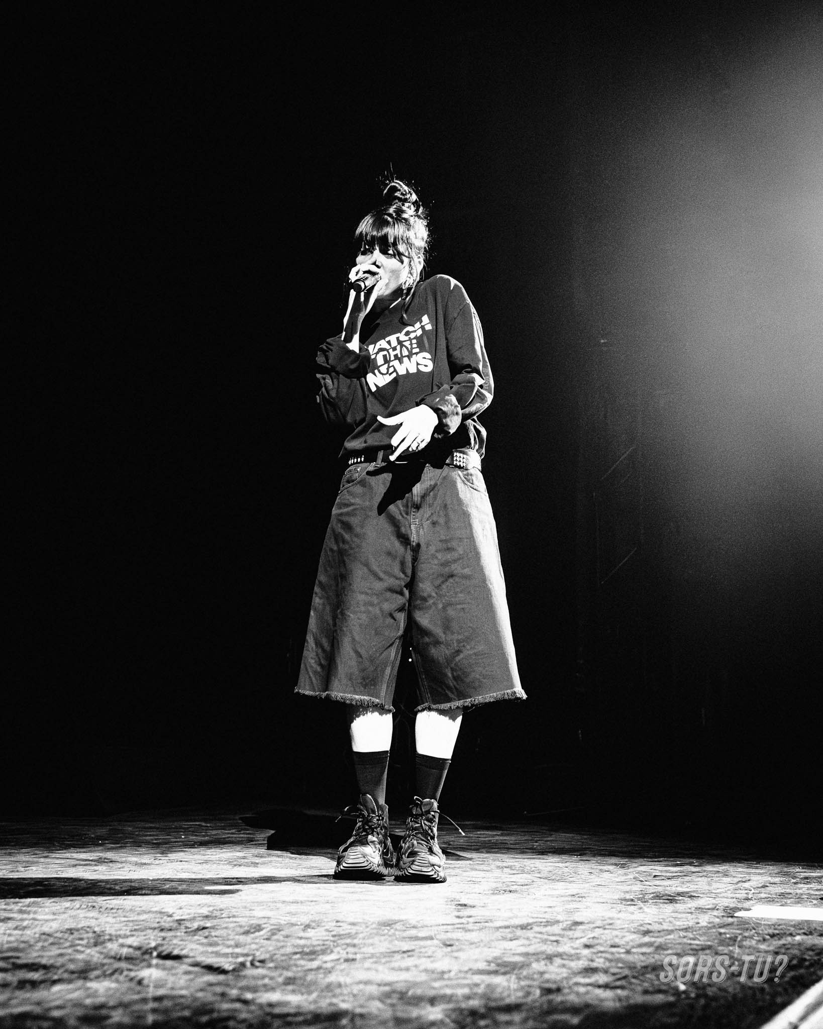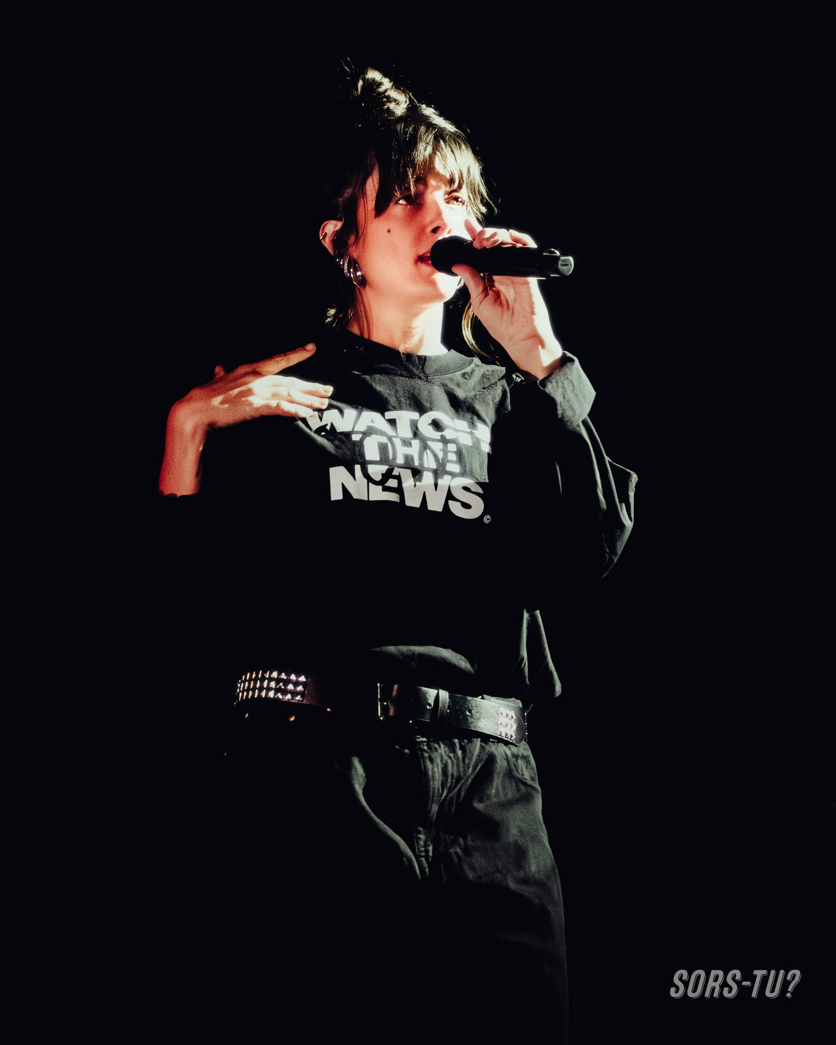 Sur scène, Noga Erez dégage une présence magnétique. Elle occupe l’espace sans artifice, simplement par la force du regard, du mouvement, de la sincérité. Sa voix navigue entre fragilité et rage, entre syncopes maîtrisées et cris étouffés. Ses textes, à la fois politiques et poétiques, résonnent comme des fragments de résistance et de lucidité dans un monde saturé d’images. Il y a chez elle cette tension rare entre la pulsion du corps et la réflexion intérieure, entre l’instinct et la construction.