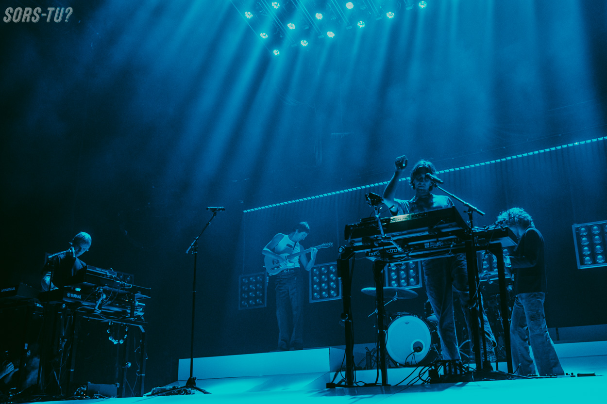 Peu après, Parcels est monté sur scène, et le public était déjà prêt à danser. L’entrée en scène avec la pièce Tobeloved a permis au band de démontrer une chose : les harmonies vocales seront au rendez-vous. Les voix se mélangent avec une aisance naturelle qui rappelle les Bee Gees des belles années.