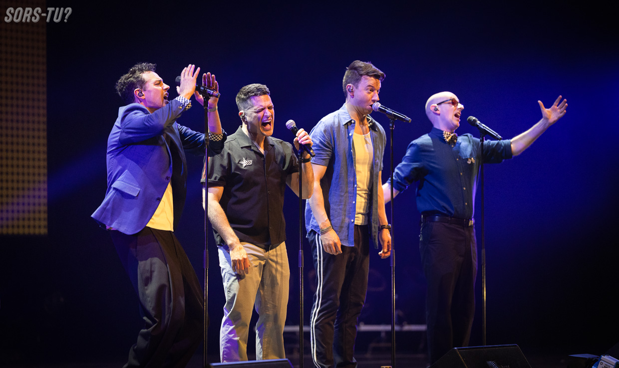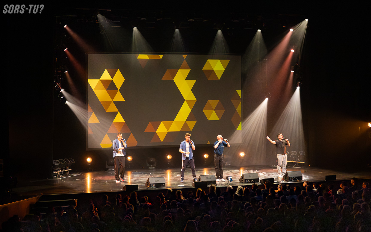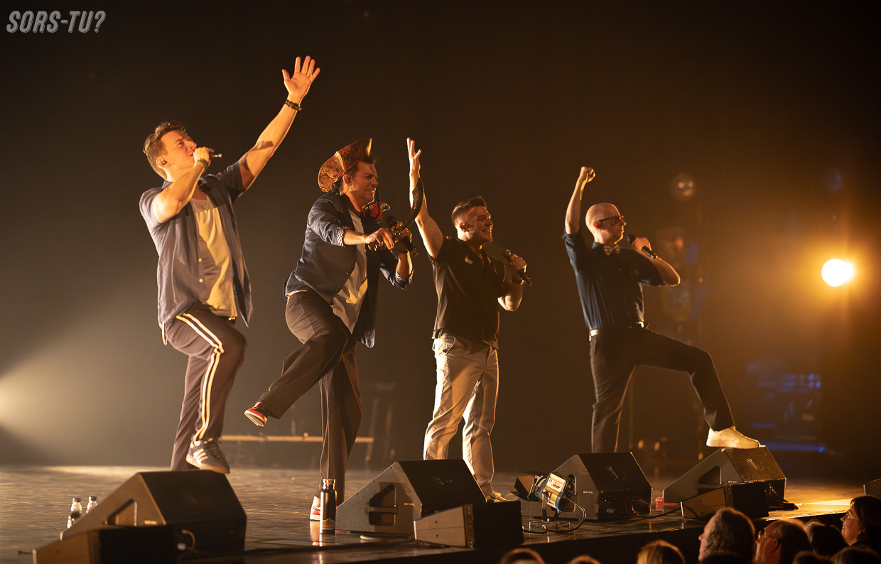 Avant même que le quatuor n’entre pleinement en scène, une surprise s’installe : ABY, première partie portée par cinq jeunes artistes, proposent un répertoire a cappella ancré dans la tradition du jazz vocal, avec des voicings riches, souvent audacieux, toujours justes. Le choix d’arrangements québécois témoigne d’un souci d’ancrage et d’identité. La réception est immédiate : le public se lève pour saluer une proposition à la fois soignée et prometteuse.