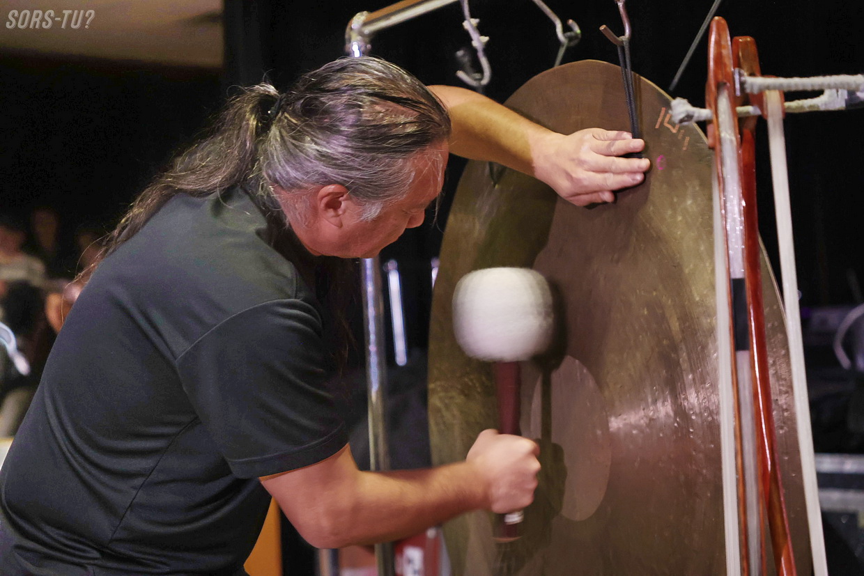 Oui, entendre et voir car c’est impressionnant comment sa performance est physique et incarnée. Nakatani lui-même insiste sur le fait que les vibrations massives des gongs sont ressenties dans le corps, et que les enregistrements ne peuvent pas restituer cette dimension. Après avoir assisté à son concert, difficile de contester cette déclaration.
