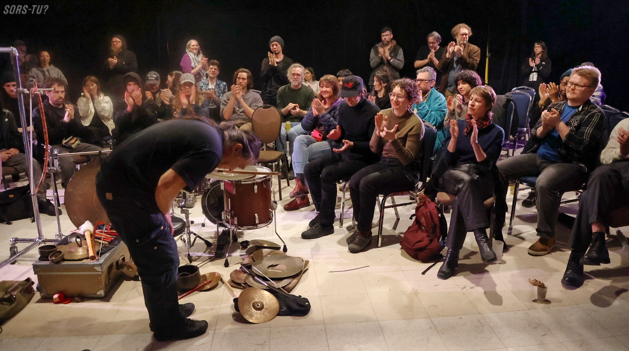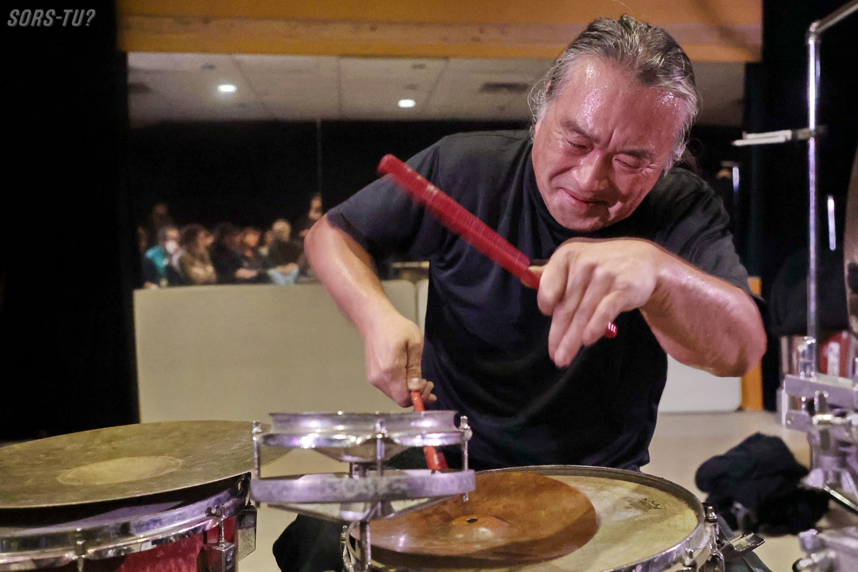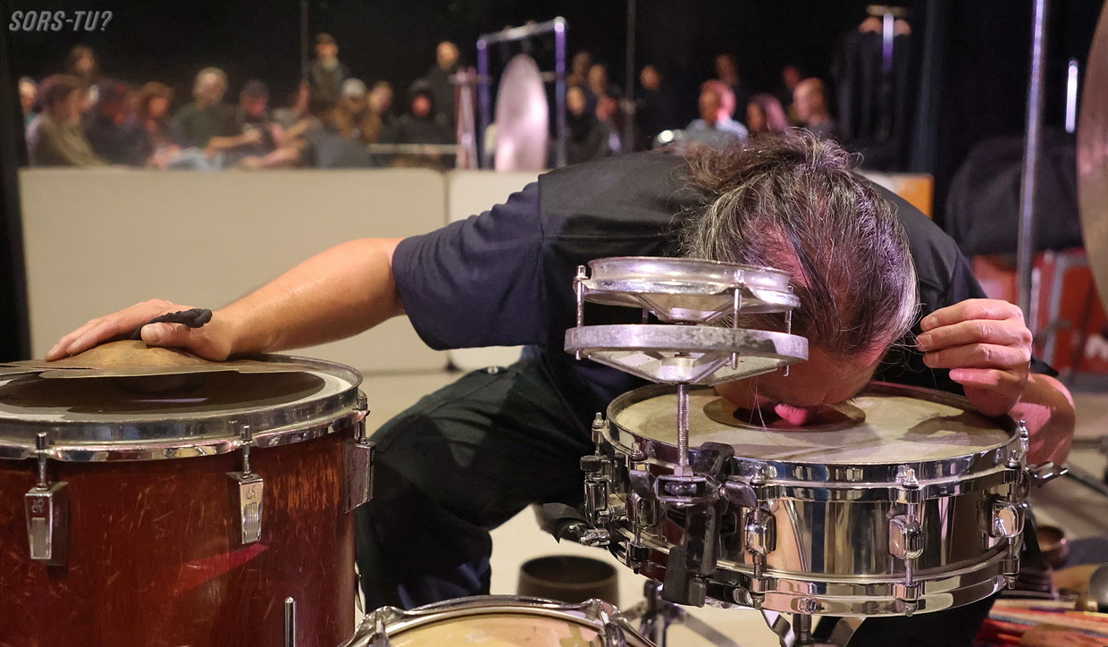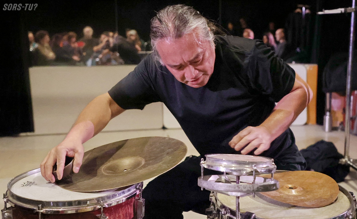 C’est quand même particulier d’avoir le privilège d’entendre et de voir un artiste comme Tatsuya Nakatani performer dans une aussi petite salle que la Toscadura. Le musicien est l’une des figures majeures de la percussion expérimentale contemporaine, il est reconnu pour son approche radicalement personnelle du son, du rythme et de l’improvisation.