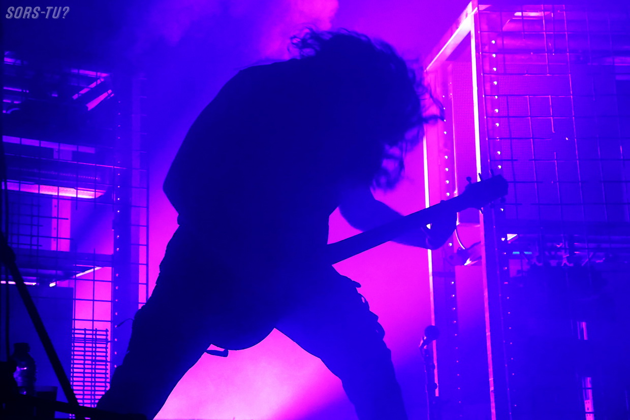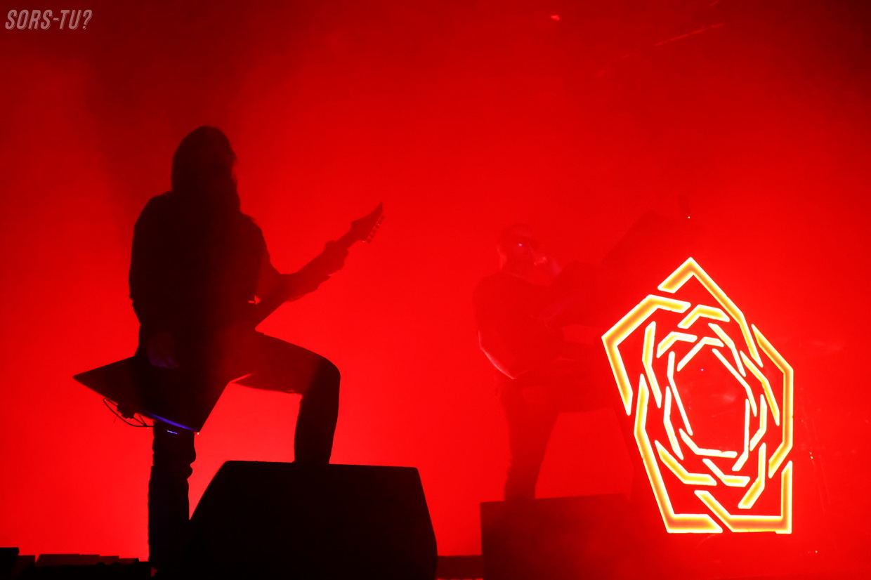 Après l’énergie complètement folle installée par HEALTH, j’ai personnellement trouvé que Carpenter Brut, malgré une entrée magistrale, mettait un peu de temps à maintenir cette intensité. Mais j’ai compris pourquoi : on est passé d’un quatuor survolté à un trio qui ne communique qu’à travers des voix robotisées, sans interaction directe.