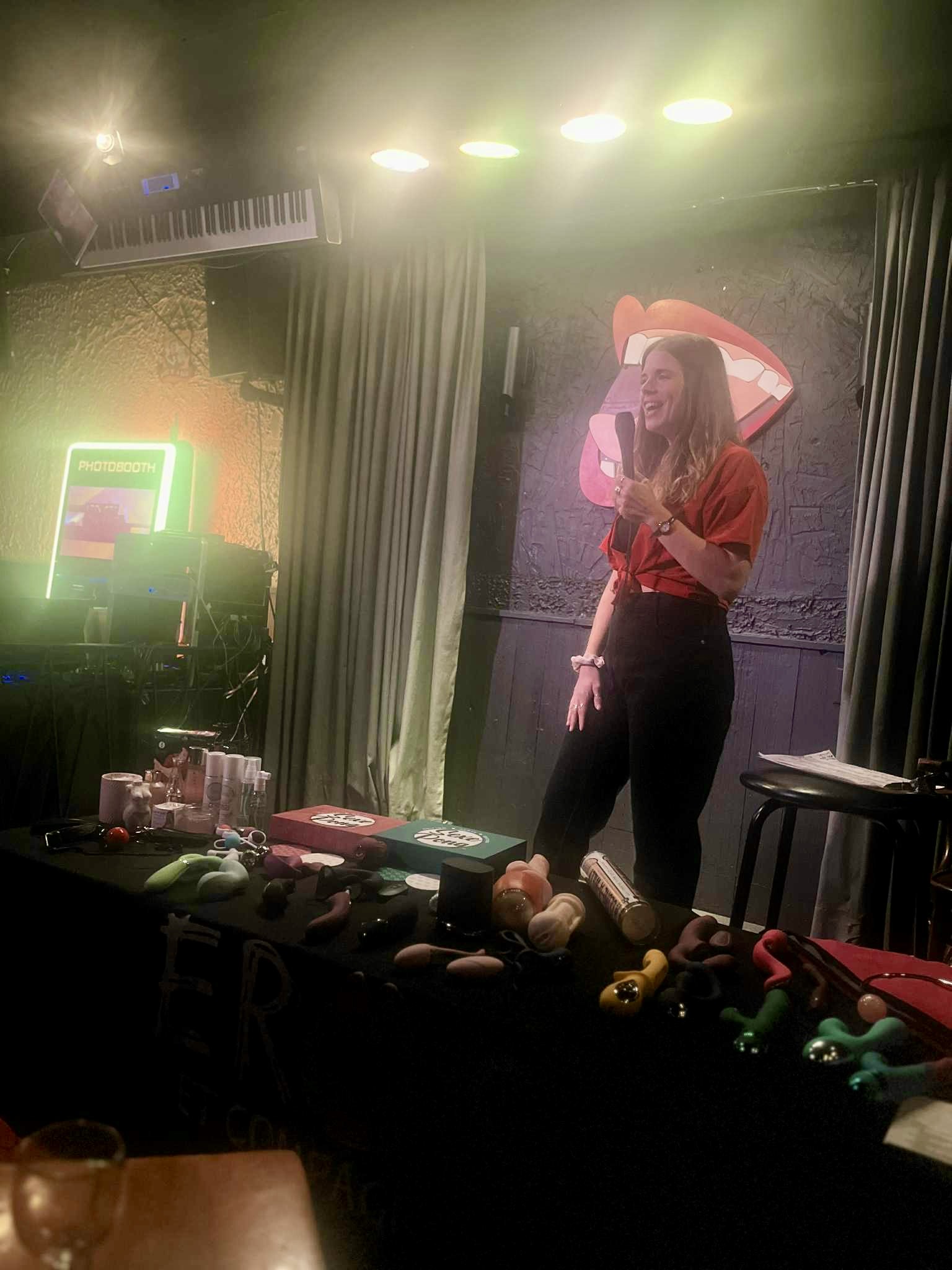 C’est ce qui lui a permis de prendre un moment à la fin de son numéro pour présenter tout une gamme de produits et d’accessoires érotiques, à la fois pour les hommes et les femmes, ce que la foule a grandement apprécié.
